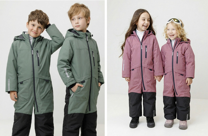 - От 4 лет и старше: полукомбинезон с курткой становится предпочтительнее. Ребенок активно двигается, самостоятельно ходит в туалет, одевается и раздевается.